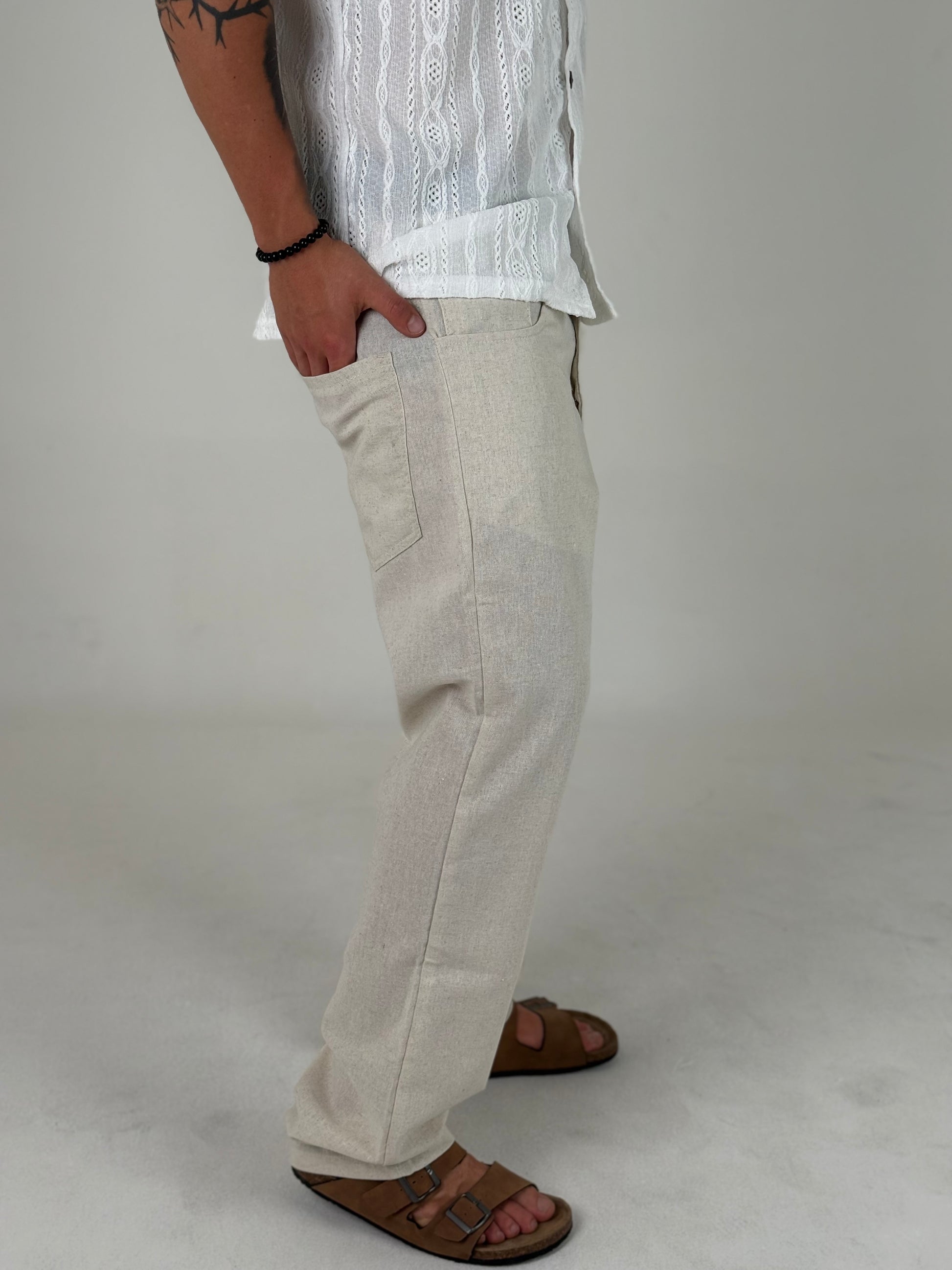 El pantalón de lino crudo es ese básico elegante que funciona en cualquier ocasión de verano.